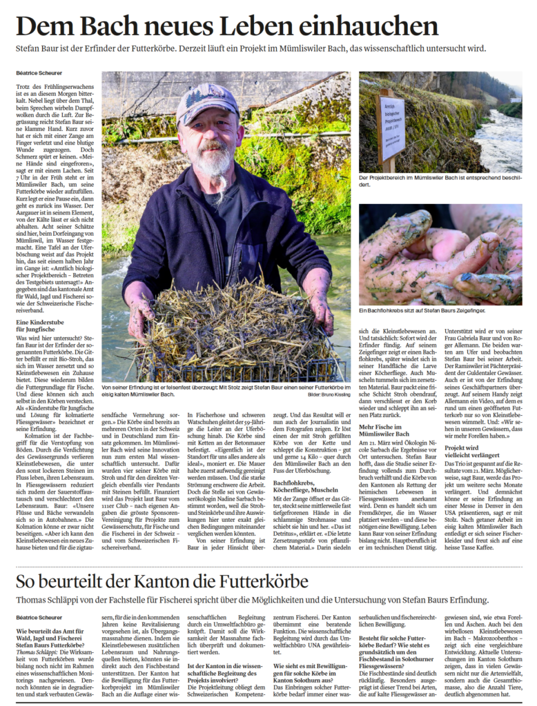 Dem Bach neues Leben einhauchen – Artikel in der Solothurner Zeitung vom 9. März 2026Uncategorized / März 29, 2026 / Kommentar verfassen PDF runterladen Hier den Artikel in der Solothurnerzeitung lesen: https://www.solothurnerzeitung.ch/solothurn/thal-gaeu/muemliswil-futterkoerbe-von-stefan-baur-werden-getestet-ld.4129286